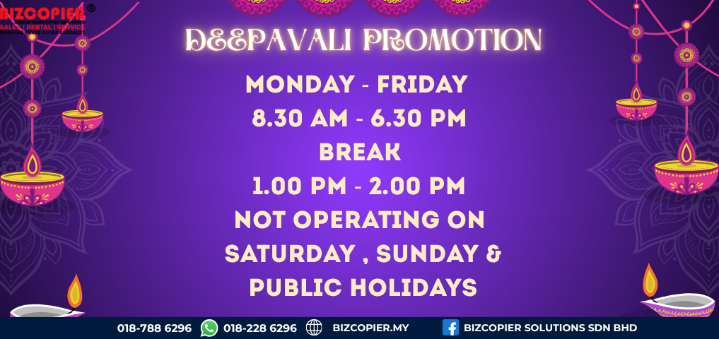 Business Hour: Monday – Friday: 8.30 am – 6.30 pm, Saturday, Sunday and Public Holidays (Malaysia): Closed